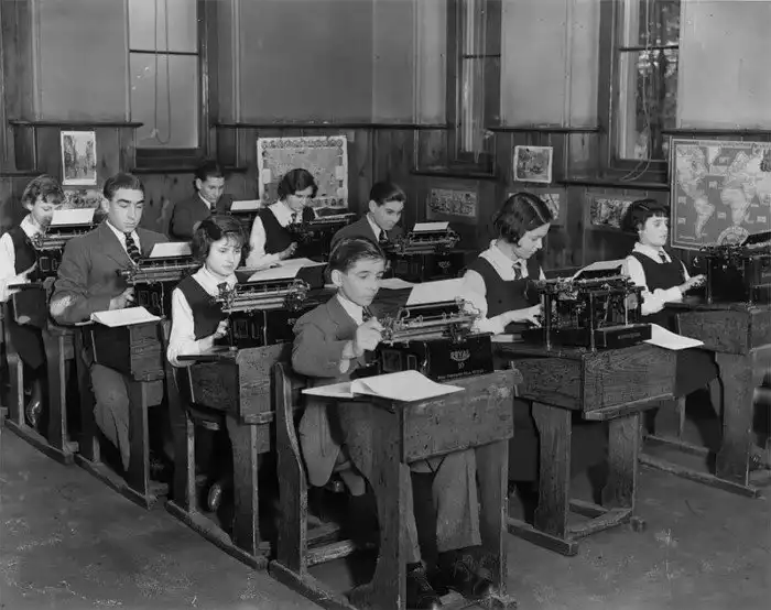 Урок машинописи в школе Licensed Victuallers School. Слау, Бэкингемшир, декабрь 1935 г.