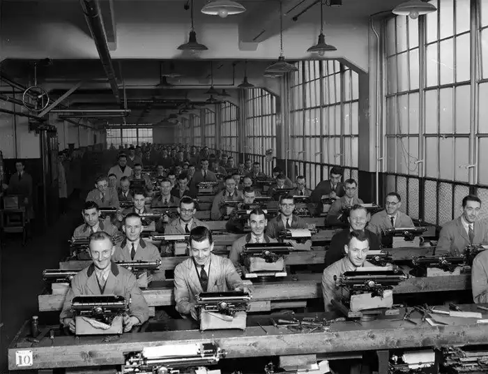 Рабочие фабрики по изготовлению пишущих машинок, 1937 год.