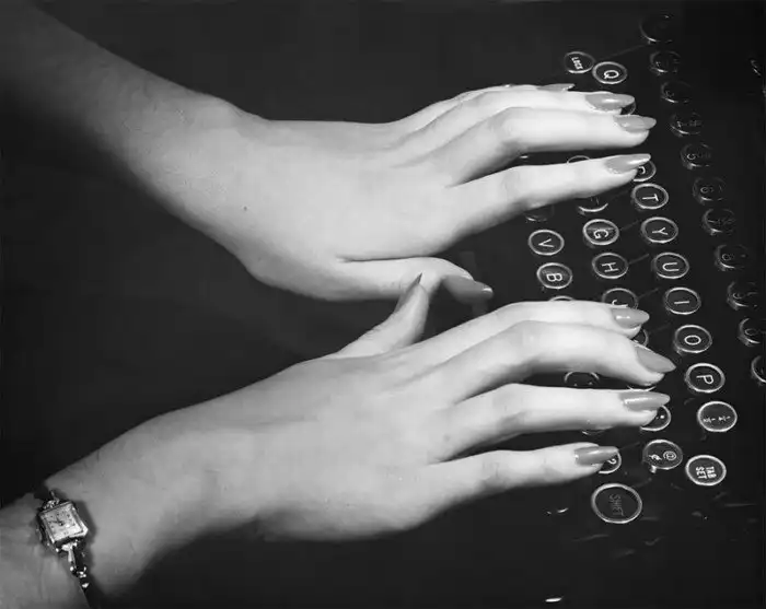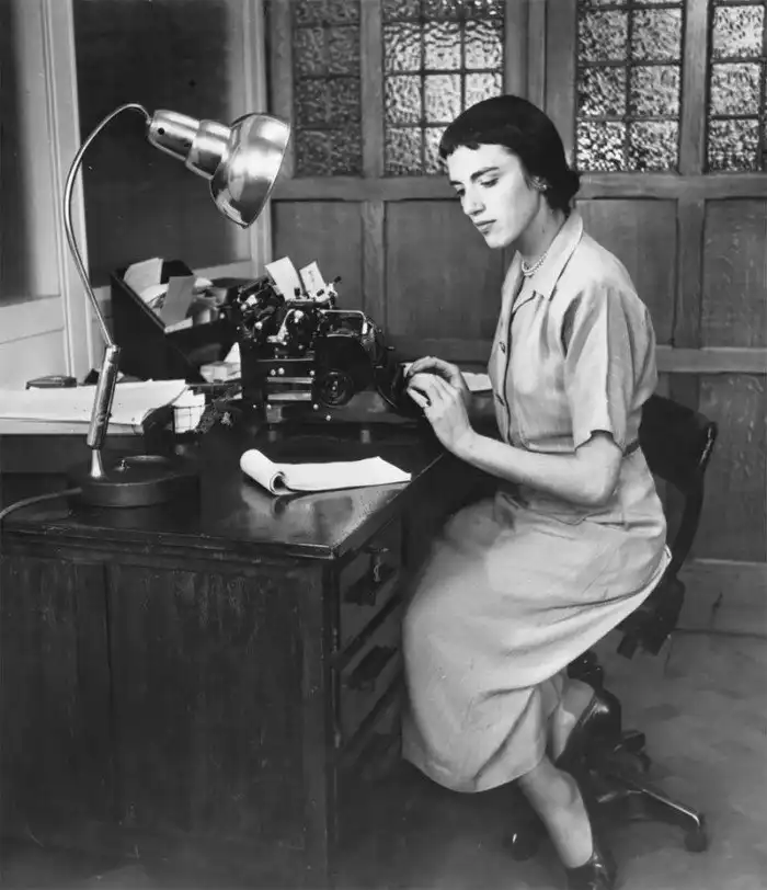 Ученицы школы машинописи отрабатывают свои навыки, 1955 г.