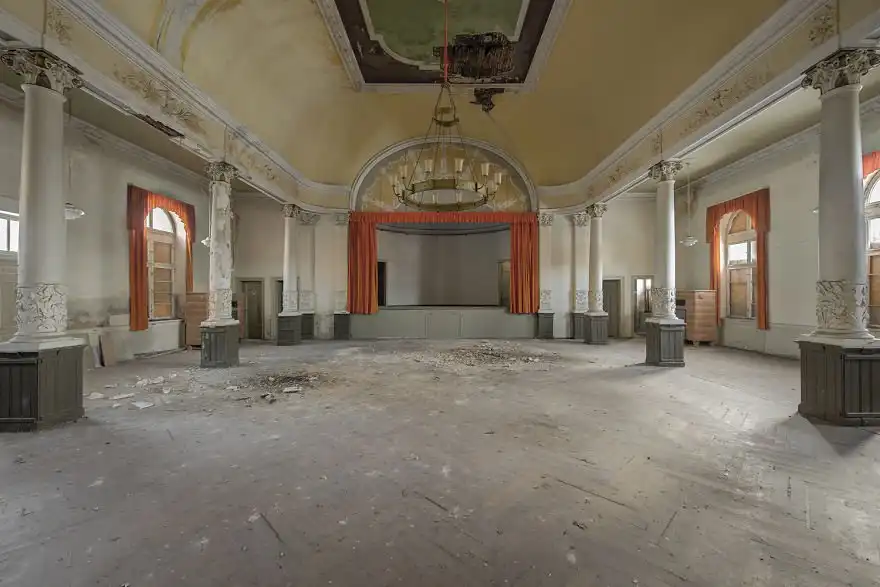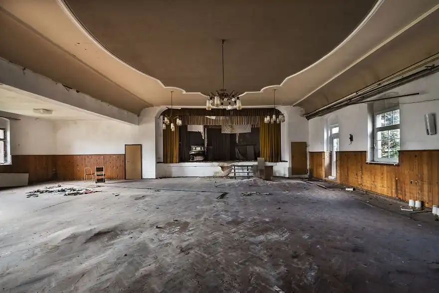 Фотограф Изабель ван Асше занимается снимками заброшенных зданий и помещений. Девушка нередко ездит в Германию - и удивляется, сколько там заброшенных залов для танцев. "В прошлом почти в каждой немецкой деревне был отель. Жители собирались там на праздники, свадьбы, дни рождения. В большинстве отелей свои были танцевальные залы. Однако времена изменились, и места стали старомодными и заброшенными", - рассказала Изабель. Давайте посмотрим на эти залы, сохранившие свои лоск и роскошь.