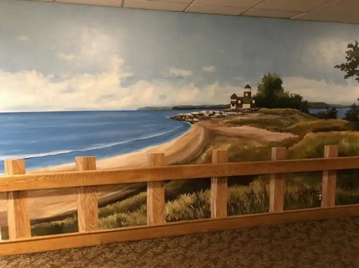 10. Забор на этой фреске в доме престарелых не только декорация, но и перила