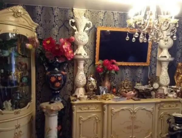 Квартира в типичной хрущевке может повергнуть неподготовленного гостя в ступор. Дело в том, что сначала ты заходишь в обшарпанный подъезд, подходишь к квартире, двери открываются и тут ба-бах - по глазам бьет ослепительный XVIII век: позолота, парча и тяжелые портьеры.