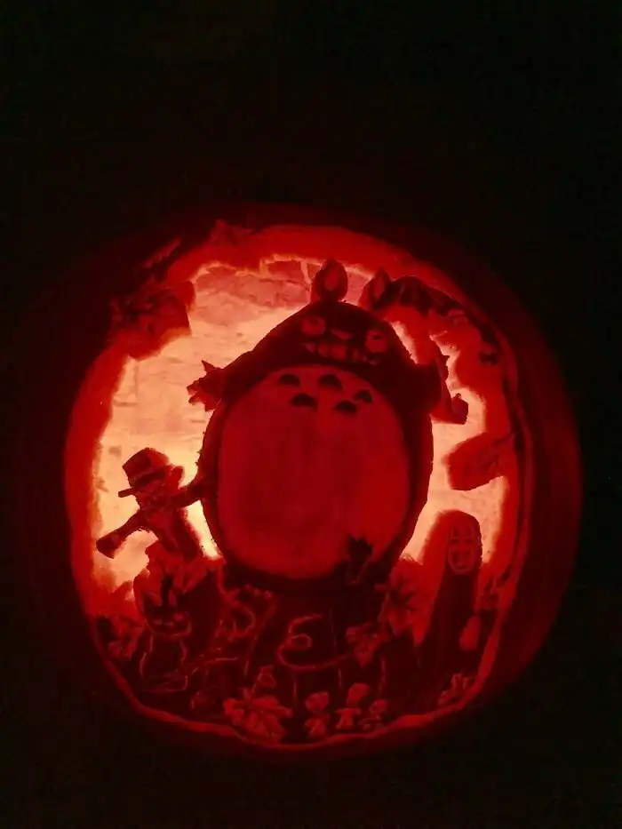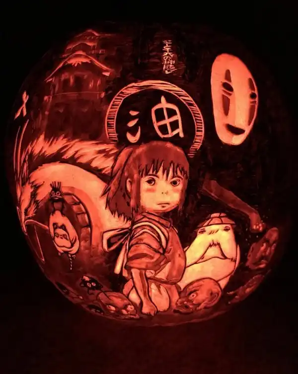 Японская аниме-студия Ghibli известна замечательными мультфильмами Хаяо Миядзаки и другими мультфильмами, признанными образцами жанра. Любители аниме, готовясь к Хэллоуину, не могли не отдать должное любимой студии, даже готовя светильники из тыкв!