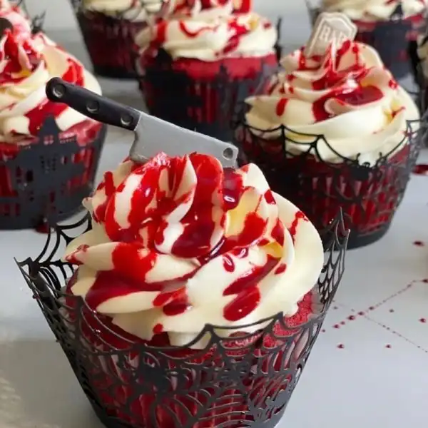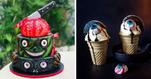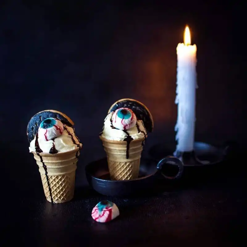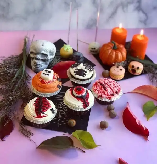 Главное развлечение детей на Хеллоуин – это выпрашивание сладостей. Малышня наряжается в страшные костюмы и ходит от дома к дому, собирая вкусняшки. Некоторые дают им простые конфеты из супермаркета, а другие готовят тематические десерты в виде символов праздника. Для родных и близких хозяйки пекут страшные кровавые торты и пирожные с жуткими глазами.