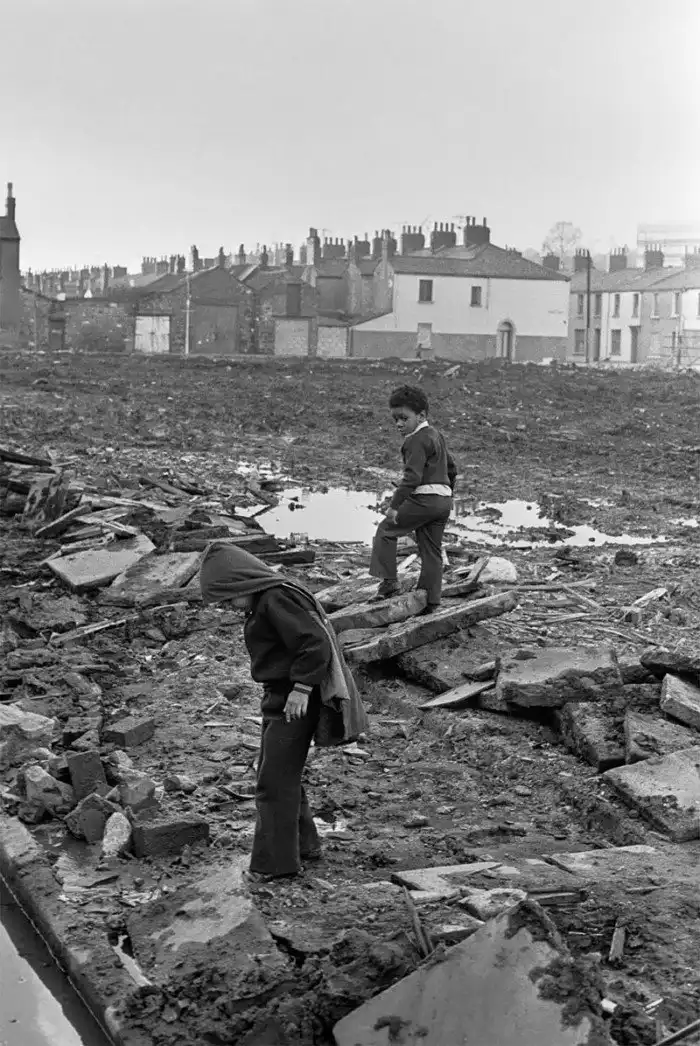 Дети играют на месте разрушенного дома. Ньюпорт, 1974