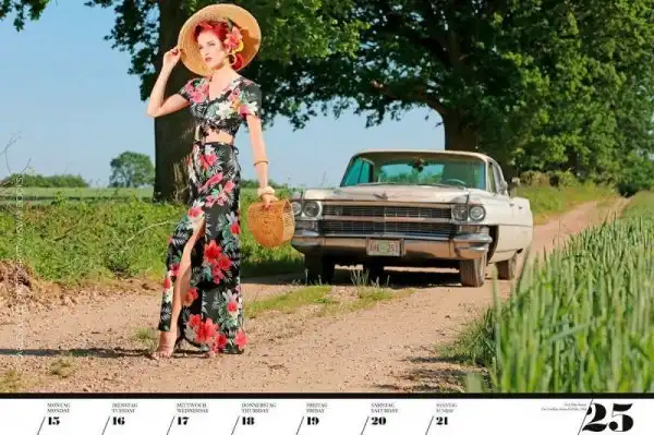 Фотограф из Германии Карлос Келла сделал очень стильный и красивый календарь на следующий год. На всех фотографиях запечатлены красивые девушки с американскими машинами, выпущенными в 50-70 годах. Выглядит действительно очень эффектно — и за счет автомобилей, и за счет моделей.
