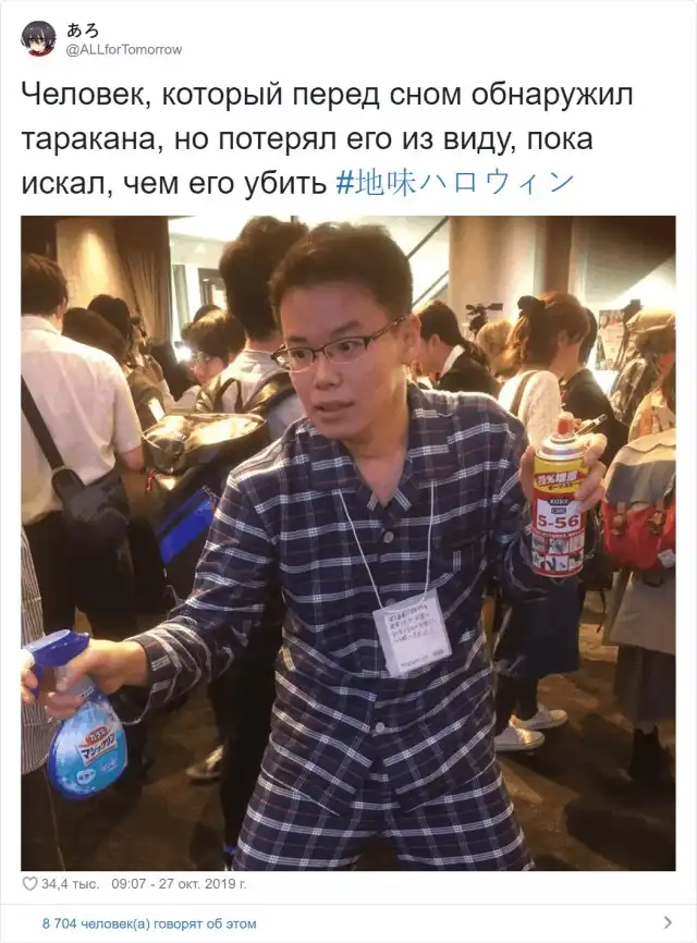 Пускай Хеллоуин является "западным" праздником, празднуют его даже в Японии. Только делают они это по-своему. Никаких жутких нарядов, искусственной крови, паутины и клыков. Но их костюмы действительно страшно... странные. Они проводят загадочное мероприятие под названием "Скучный Хеллоуин", в котором они идут против стандартов этого праздника. Японцы стараются сделать максимально скучные и неинтересные костюмы. А главной фишкой являются - специфичные описания к ним, пишет издание Kotaku.