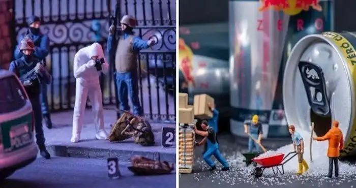 Питер Чаквари превращает предметы быта в сюрреалистические миниатюрные миры. Он провел три года, создавая этот проект под названием «Крошечная пустошь». В этой серии миниатюрные фигуры размещаются рядом с предметами повседневного обихода, создавая иллюзию микроскопических миров.