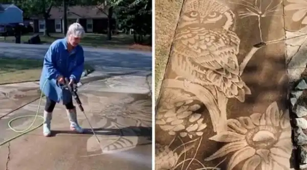 Оказалось, что когда ее подруга решила подготовить дом матери к продажи, то позвала Вуд помочь вымыть все: холл, гостиную, гараж, дворик, забор. А вот когда увидела дорожку у дома, то впала в уныние – как это сделать? И поняла: нужно превратить ее в искусство!