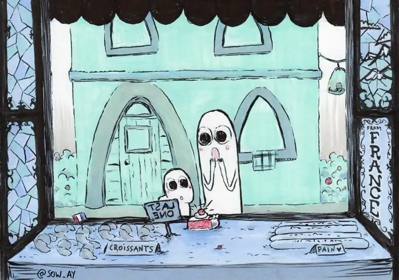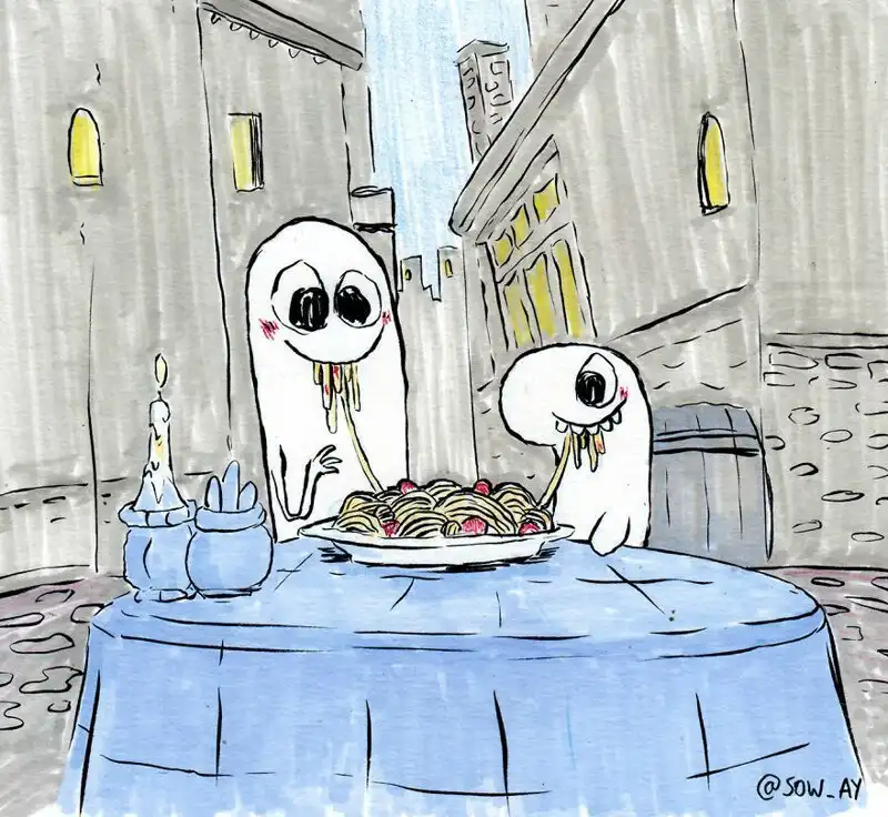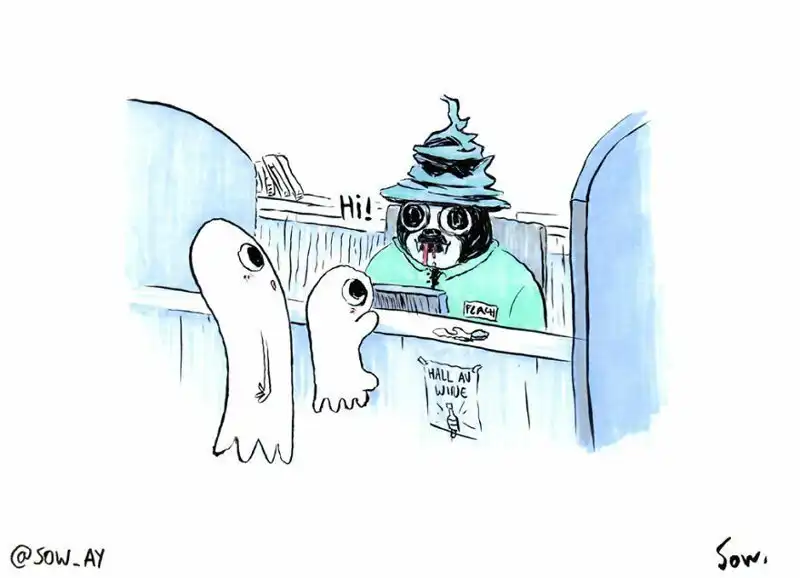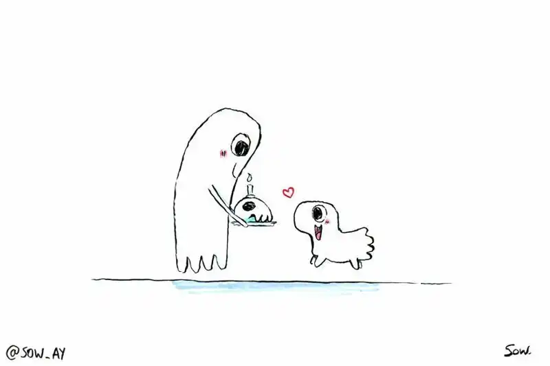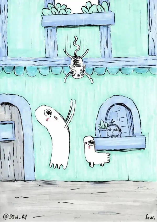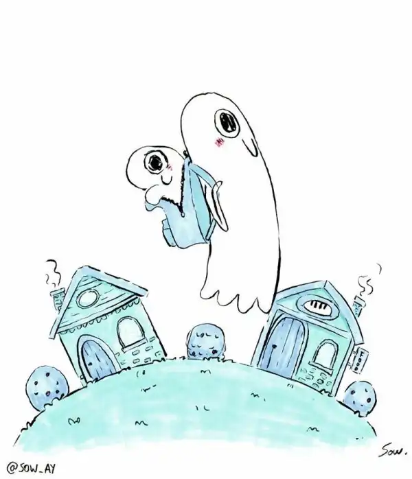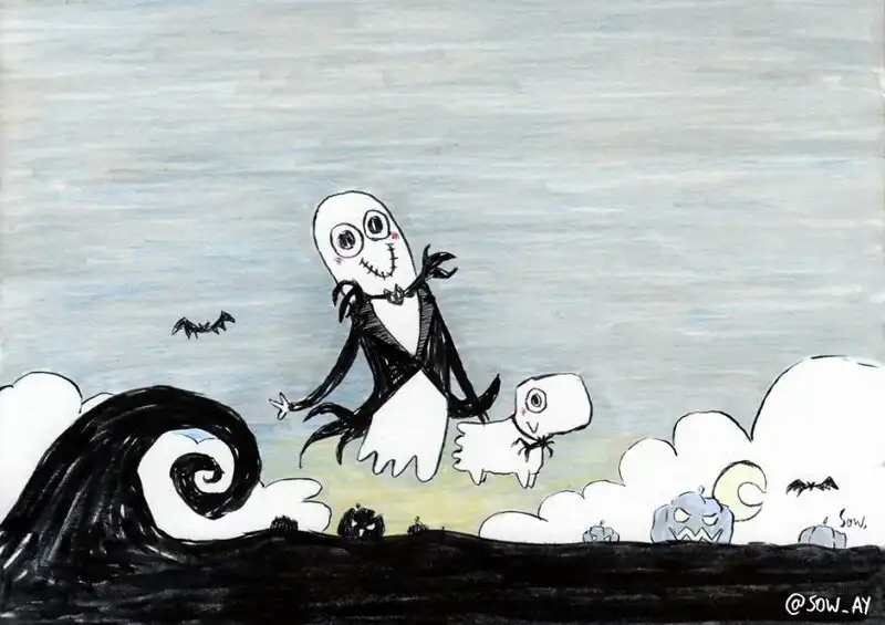 Inktober ("Чернильный октябрь") - это ежегодный конкурс в Инстаграме, придуманный иллюстратором Джейком Паркером. Правила просты: каждый день в течение октября нужно делать один рисунок чернилами. Художник Sow Ay выполнил эти правила и нарисовал забавную историю приключений двух персонажей: привидения Томи и его собаки по кличке Призрак.