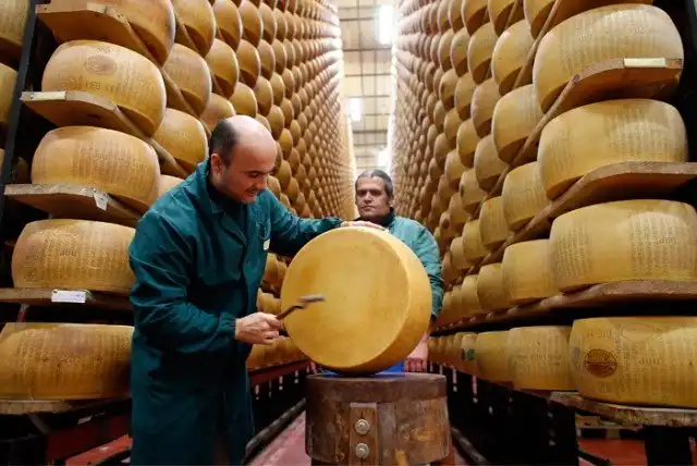 Это необычное учреждение находится в Италии и является собственностью банка «Кредито Эмилиано». Именно головками сыра забиты полки хранилища. Количество хранящегося там сыра поражает: в среднем там находится около 300 000 голов пармезана, каждая из которых весом от 14 до 17 килограмм.