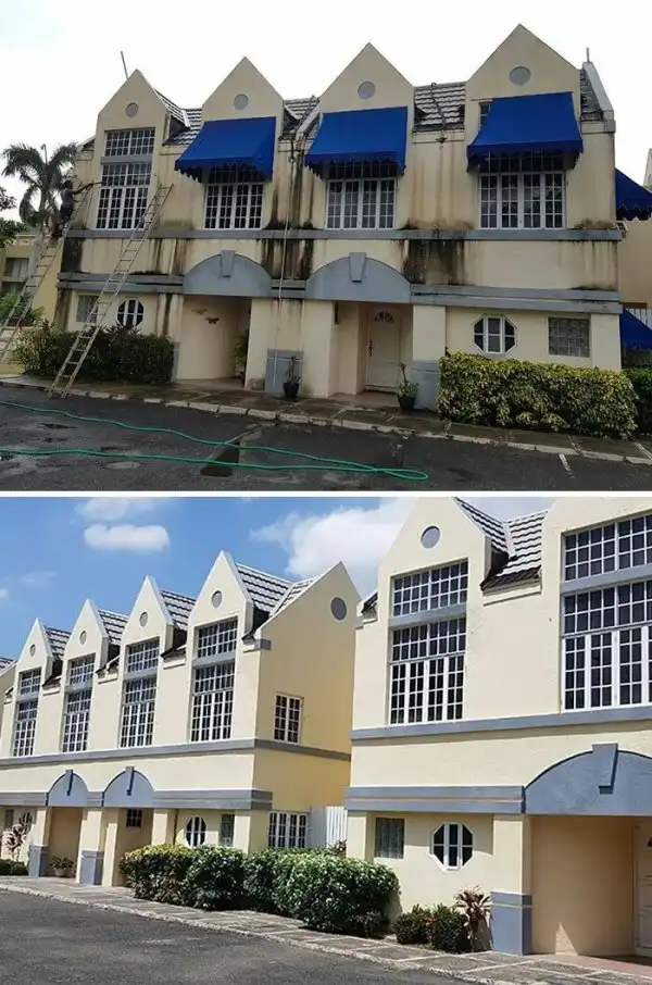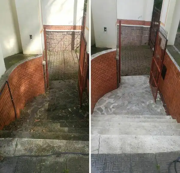 Эти фотографии "до" и "после" понравятся тем, кто обожает наводить чистоту и отмывать всё до блеска. Особенно с помощью профессиональной мойки высокого давления - мощного аппарата, который справится с любой грязью. Это настоящий супергерой гигиены!