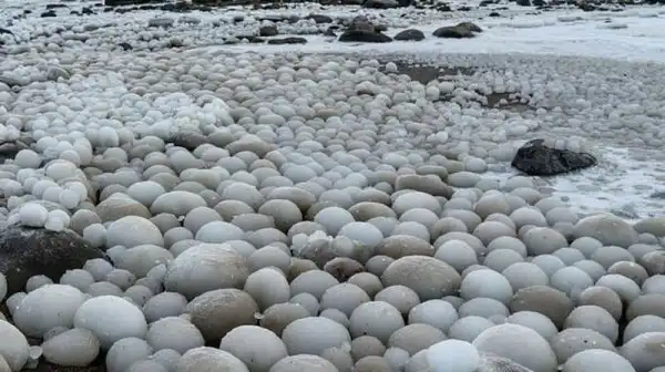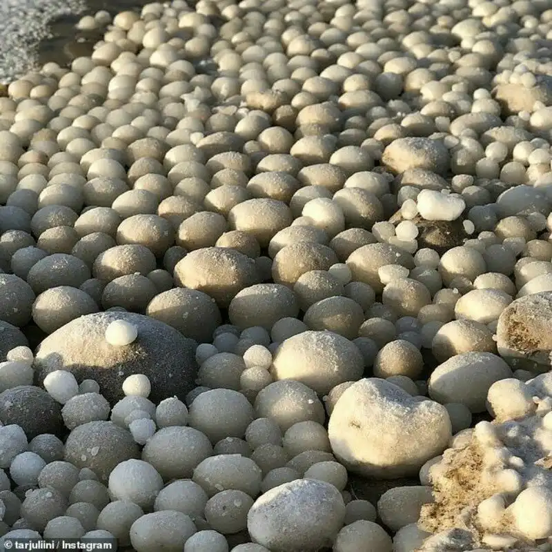 Очевидцы запечатлели необычное явления у берегов Финляндии. Все побережье было покрыто яйцевидными ледяными образованиями. Удивляет то, что все шарики были почти идеальной формы — да уж, чего только природа не сделает!