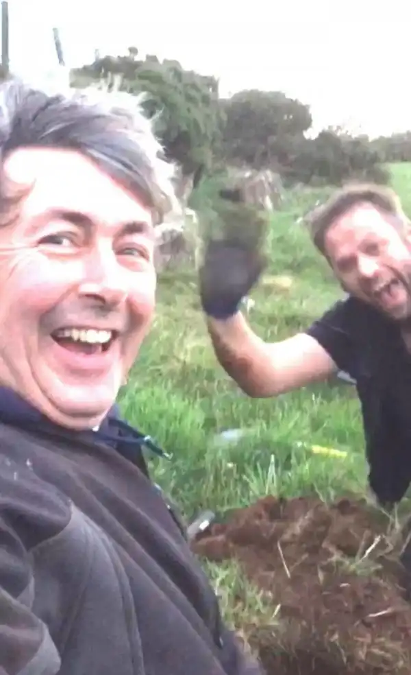 Стоит отметить, что Пол и Майкл часто проводят время подобным образом. Они часто выбираются на поиски сокровищ, но удача им не улыбалась... до этого момента. Сначала они нашли монету в 5 пенсов и подкову. И только Майкл собирался оставить надежду, как вдруг он услышал крик друга: "Это тот самый момент, о котором мы мечтали!"
