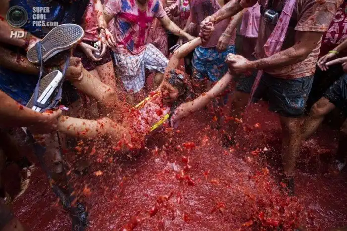 Во время фестиваля используется до 130 тонн томатных боеприпасов.