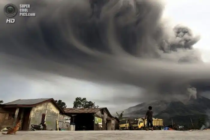 Собака в левом углу наблюдает за извержением, которое она на спор предсказала ещё вчера.