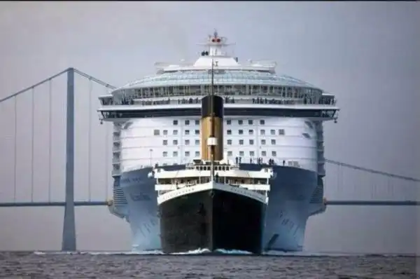 Титаник на фоне современных лайнеров