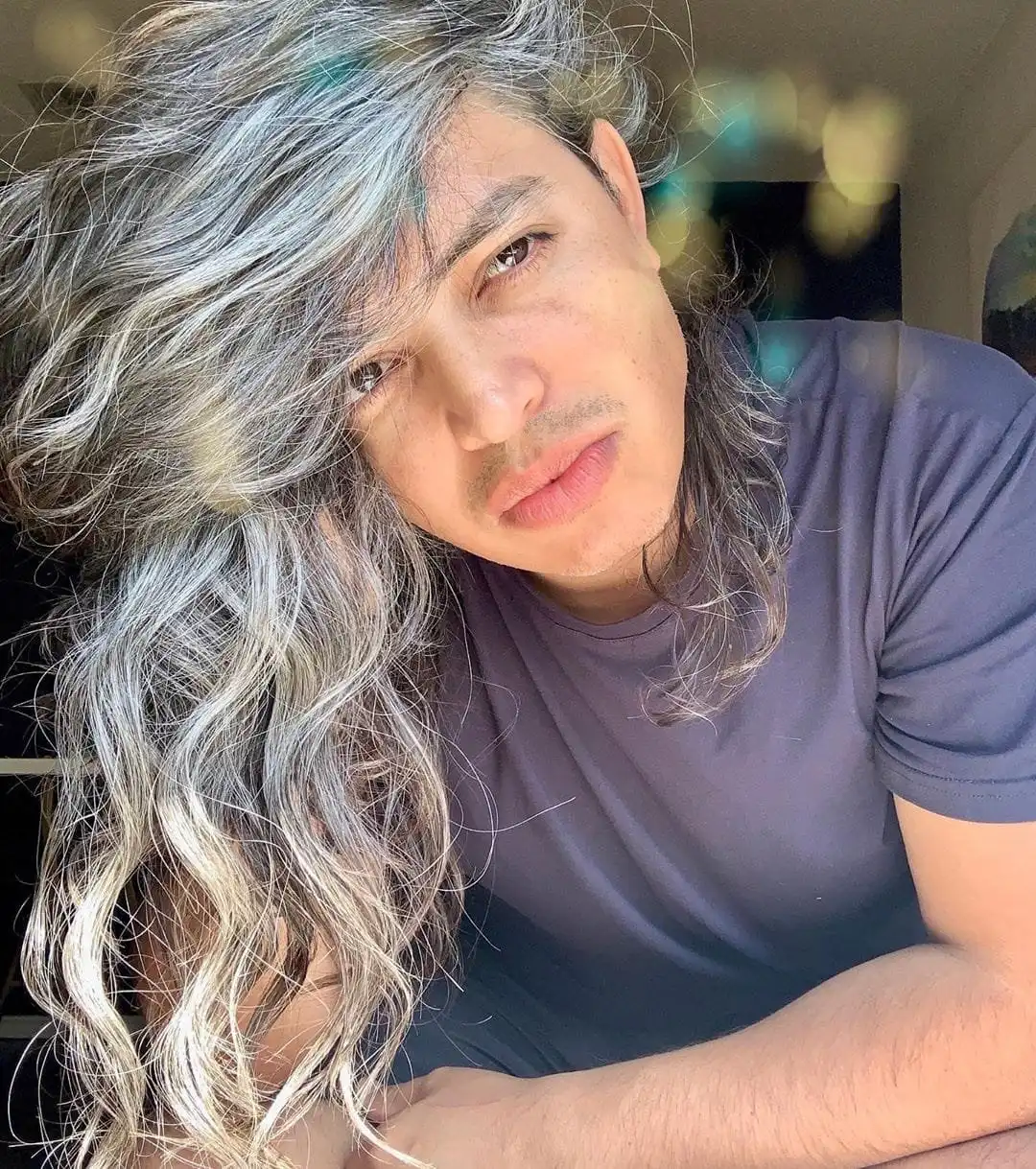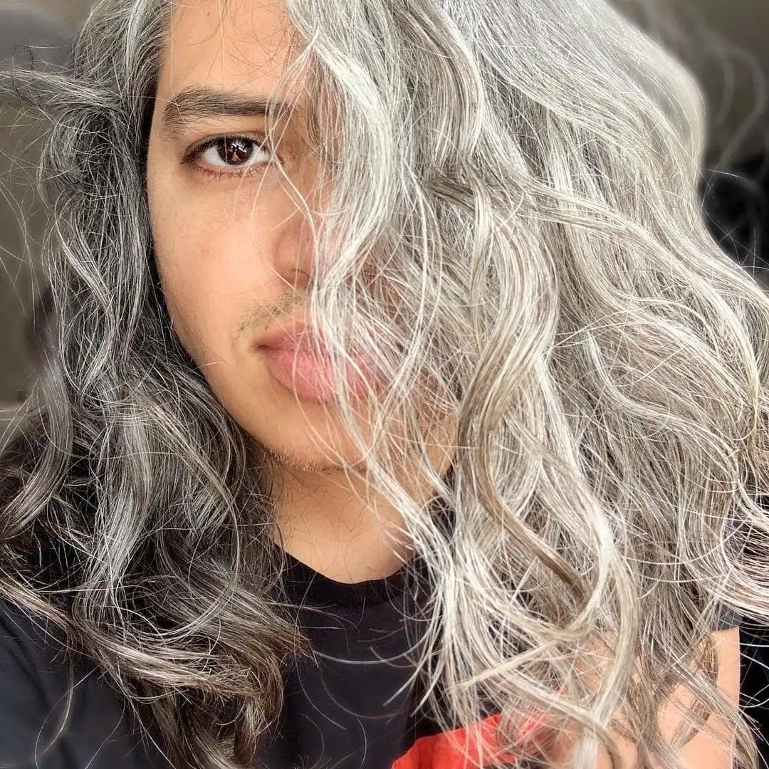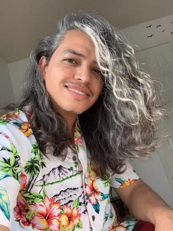 Проблема заключалась в том, что у парня в 18 лет поседели волосы. Чтобы не выделяться, он начал красить их в темный цвет, и делал так до 33 лет. А потом плюнул на всех и отрастил вот такую гриву, став звездой социальных сетей.
