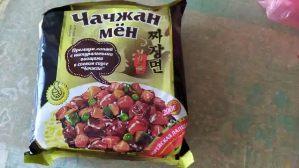 Получается вот такая "няма", хотя по виду не скажешь. Само собой, овощей как на фото, тут нет. Допускаю, что пока соус ехал из Кореи, овощи перемололись в жижево, зато здесь есть ровно три кусочка (на фото два) мяса, которое вполне себе, что даже удивительно. Нет, это не просто тупо соевый соус с вермишелью, как думают многие. Кто любит корейскую или китайскую кухню в принципе, тот оценит. Это действительно вкусно, что подтвердила жена, а главное, что это не какой-то изыск для русского человека. Все очень норм.