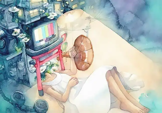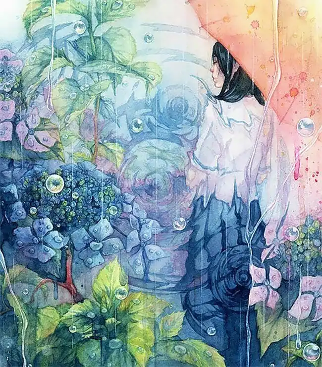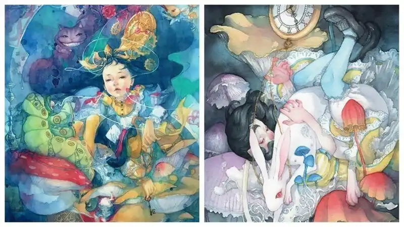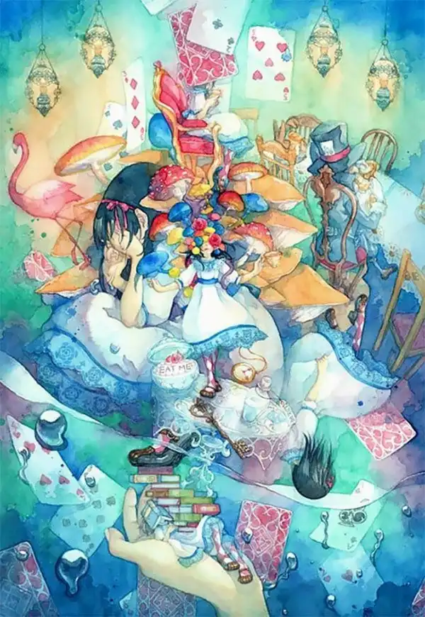 Художница Таупе Суюка - признанный мастер акварели. В своих работах она умеет передать волшебство сказки и показать удивительный мир Алисы в Стране чудес, переплетя его с традиционными и узнаваемыми элементами японской культуры.