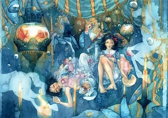 В некотором смысле она создает совершенно новый мир, добавляя многое от себя и выводя его за пределы книги, но самые сильные образы первоисточника не узнать невозможно. Попробуйте найти их в этих акварелях, а также не забудьте получить удовольствие от других работ художницы.