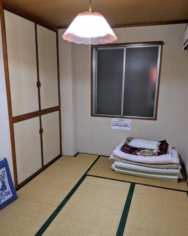 Всего 120 йен за ночь! Просто невероятно. Чтобы было понятно – это всего $1,30 за возможность переночевать с относительным комфортом. Да, номер маленький, спать матрасе на полу (так все в Японии спят), санузел на этаже, зато тепло, светло, свежая постель. Но есть один нюанс.