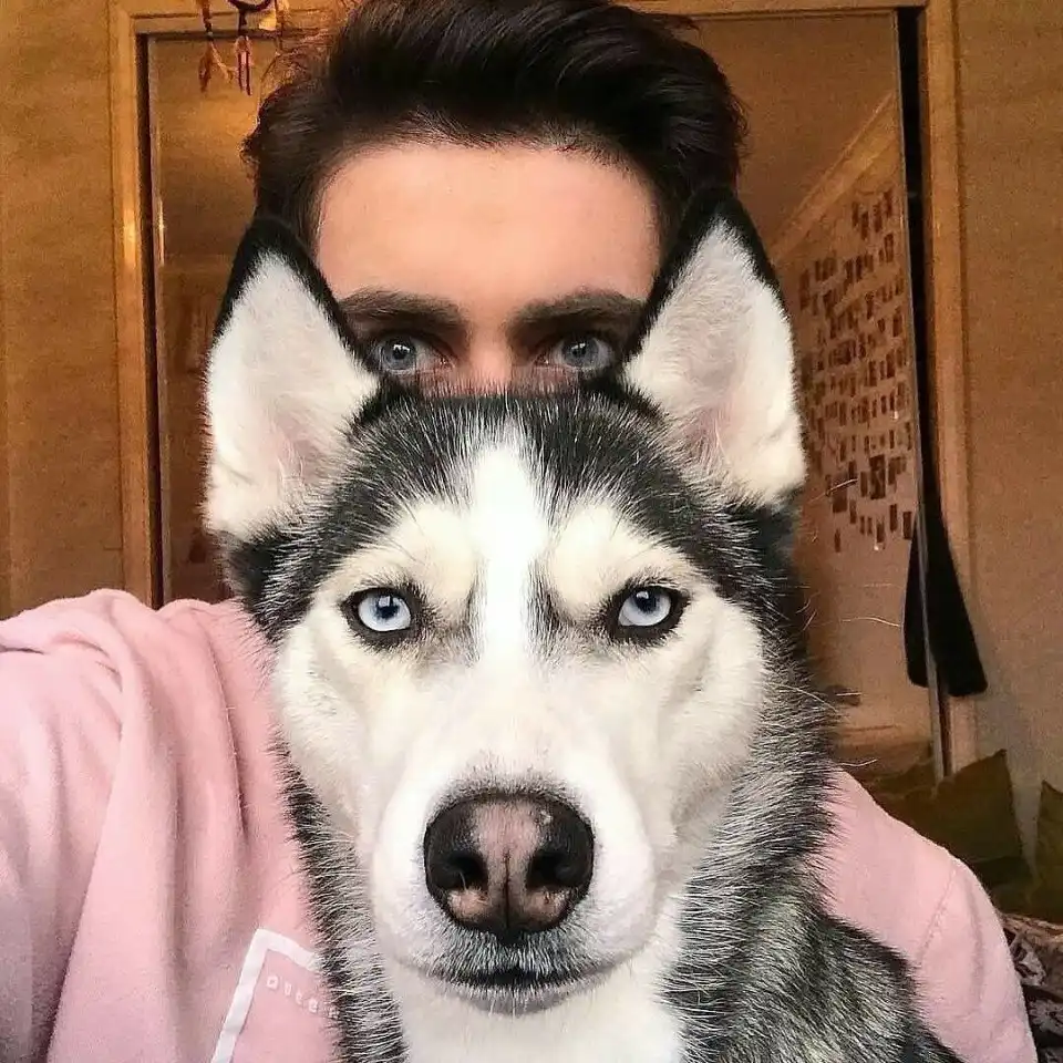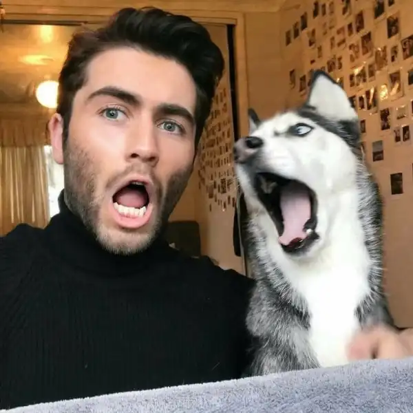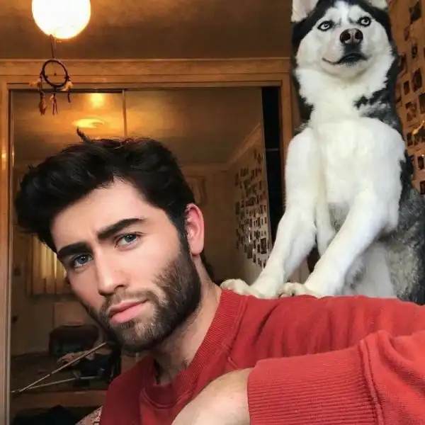 Этот мужчина привязан к своему псу, который копирует его мимику. Вместе они делают забавные постановочные фото, которые затем представляют пользователями.