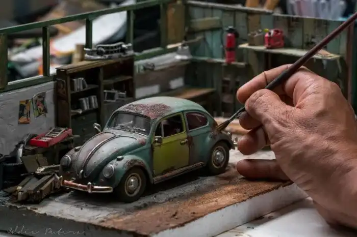 Сейчас на счету Эдди более сотни диорам, и часть из них уже выкуплена поклонниками его творчества со всего света. Бывает, работает Путера и по заказу: например, на Bored Panda однажды появилась история о том, как некий заказчик попросил Эдди воссоздать деревенский дом его деда и дедушкин "Жук" – чтобы потом подарить диораму самому дедушке. Как говорит художник, работать над диорамами он может сутками, отвлекаясь лишь на сон и лапшу быстрого приготовления.