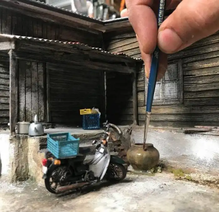 С одной стороны, по миниатюрам Эдди можно изучать как быт сельских районов Малайзии, так и нюансы ее автопрома. С другой, он сам признавался, что поставщиками объектов для диорам ему частенько служат окрестные магазины игрушек – нужно просто научиться смотреть на то, что там продается, особым взглядом, видеть в новенькой машинке или кукле перспективу ее трансформации в нечто уникальное, что-то, что может рассказать историю.