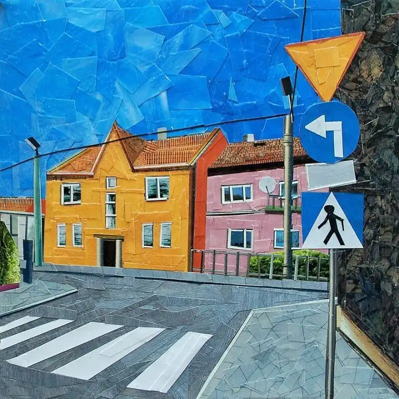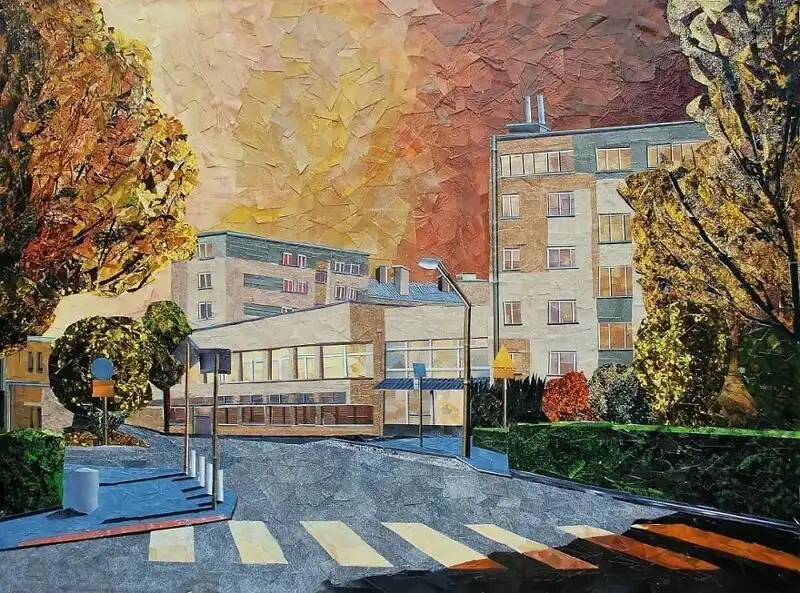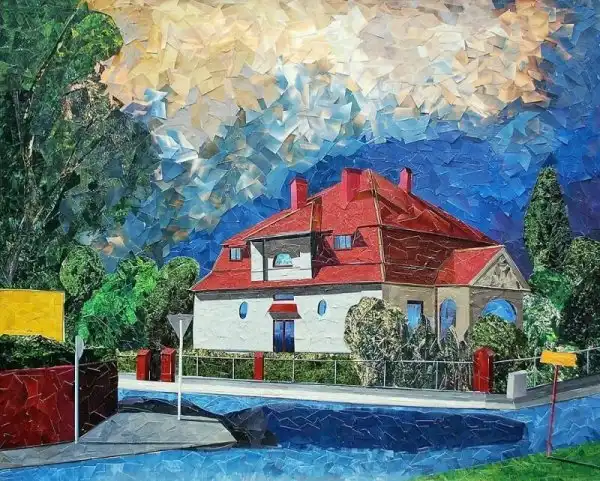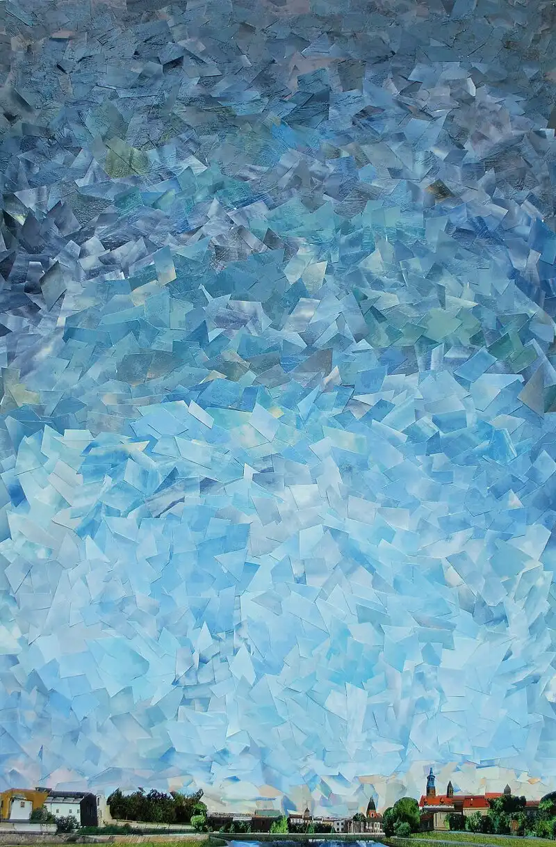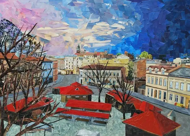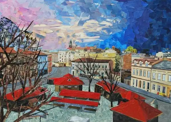 Если мимолетно взглянуть на произведения искусства Альбина Талика, то можно подумать, что это масляные картины, но самом деле это коллажи из тысяч порванных клочков бумаги.