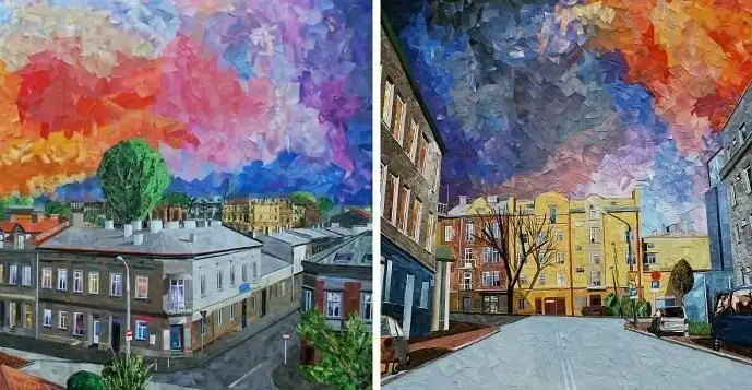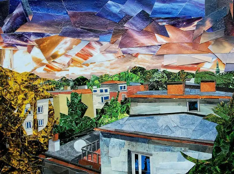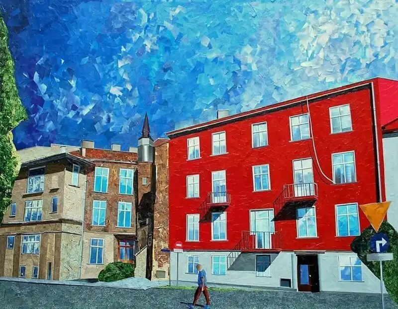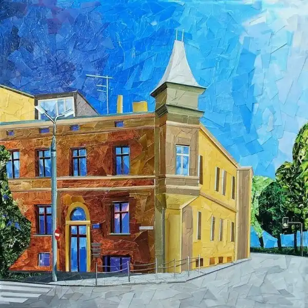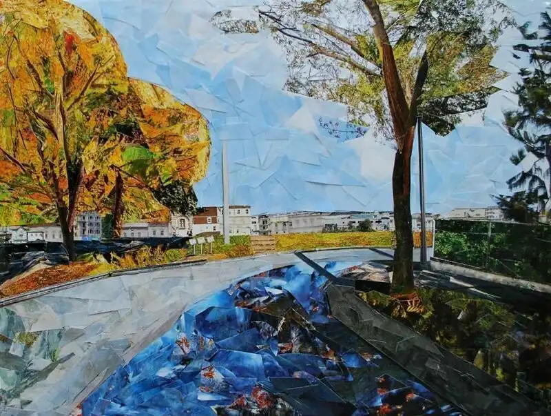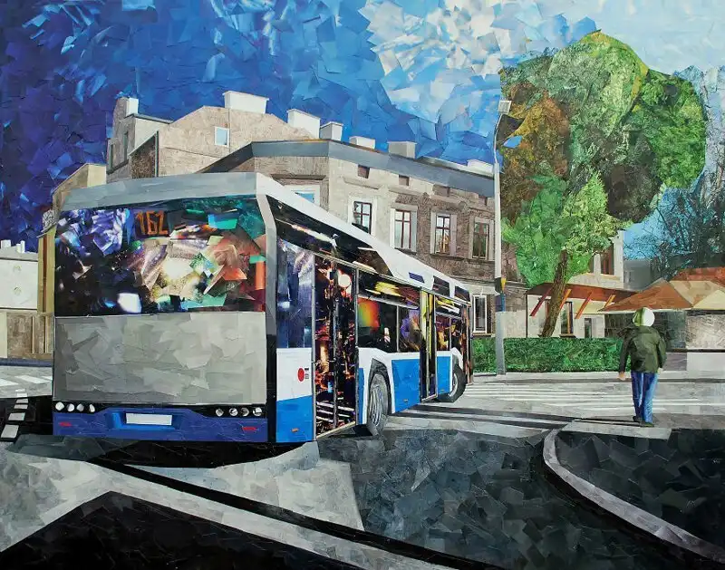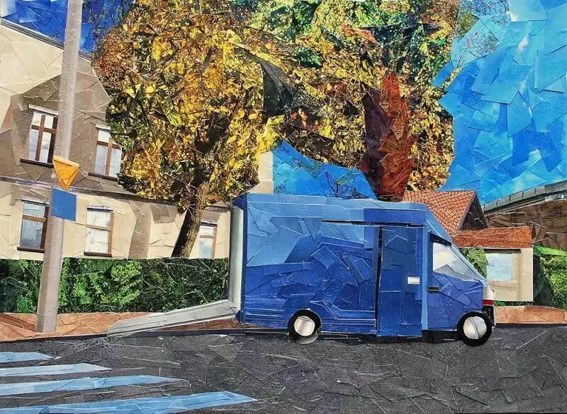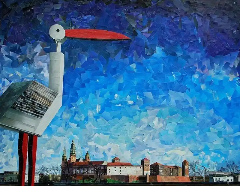Если мимолетно взглянуть на произведения искусства Альбина Талика, то можно подумать, что это масляные картины, но самом деле это коллажи из тысяч порванных клочков бумаги.