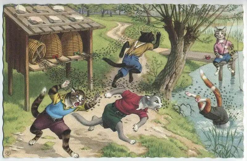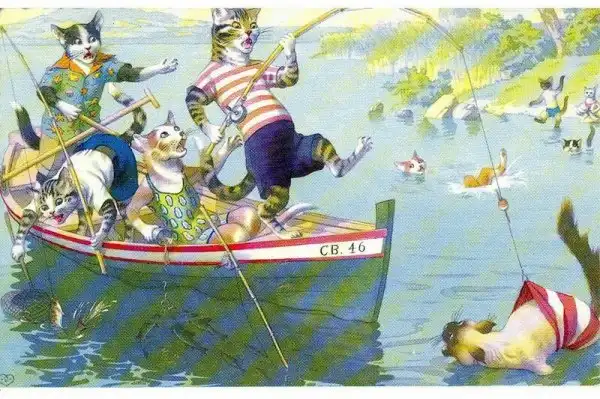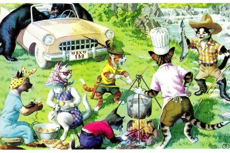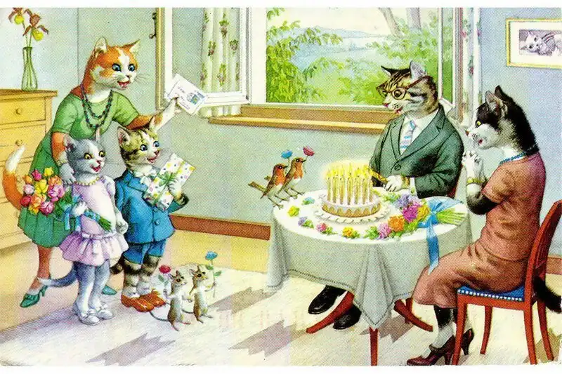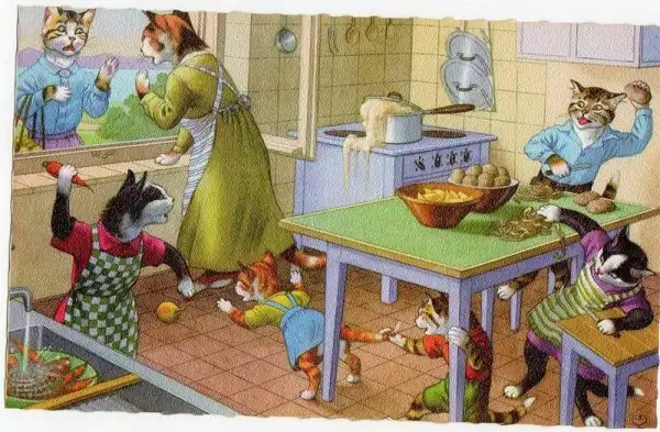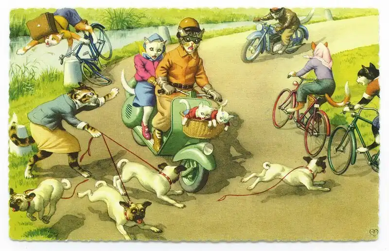 Эти милые очаровательные открытки о повседневной жизни кошек рисовал нью-йоркский художник Юджин Хартунг. Открытки выходили в издательстве "Альфред Мейнцер" в 1950-60-х годах. Наслаждайтесь!