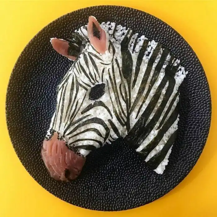 18. Зебра (суши-рис, свежий тунес, нори; подавать с имбирем, васаби и соевым соусом)