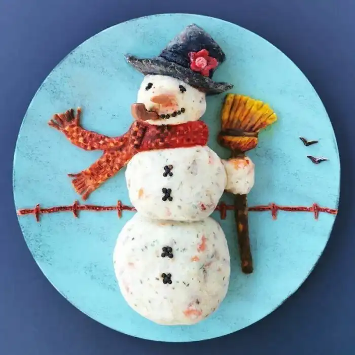 28. Снеговик (картофельное пюре с тыквой и луком, приправленное свежей петрушкой, куркумой, мускатным орехом и болгарским перцем)