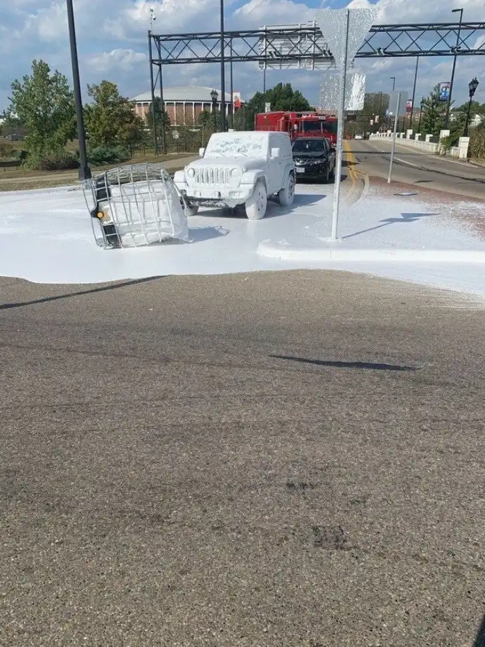11. Грузовик вёз бак с белой краской, и он выпал на дорогу