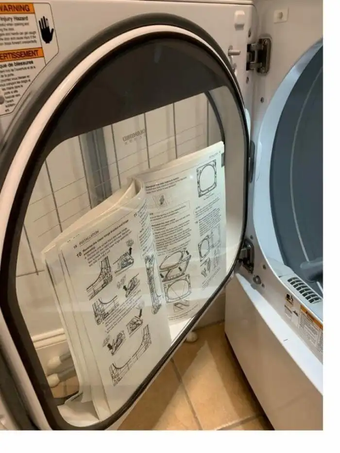 7. Когда нечаянно установил инструкцию в дверь сушилки