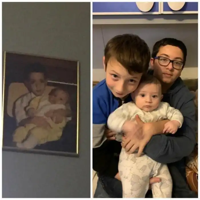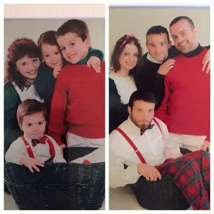 4. "Подготовили для мамы рождественский подарок. Воссоздали фото 27-летней давности"
