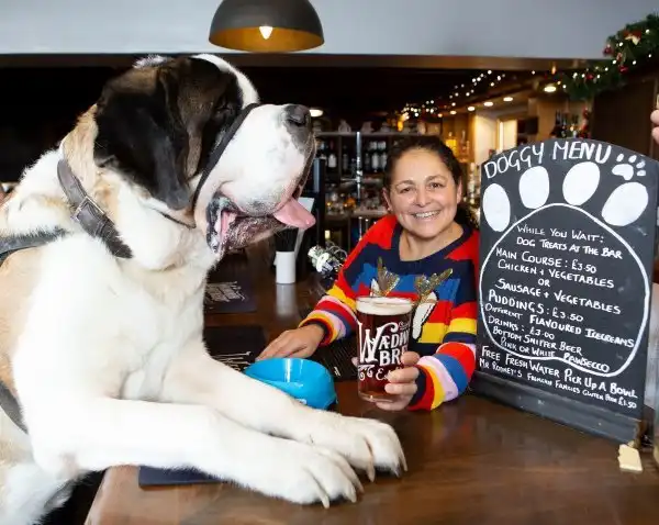 В пабе разработано специальное меню для четвероногих посетителей с вкусными фирменными блюдами и безалкогольными напитками, включая пиво.
