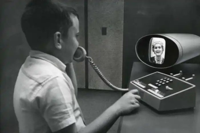Мальчик использует видеотелефон, 1964 год.
