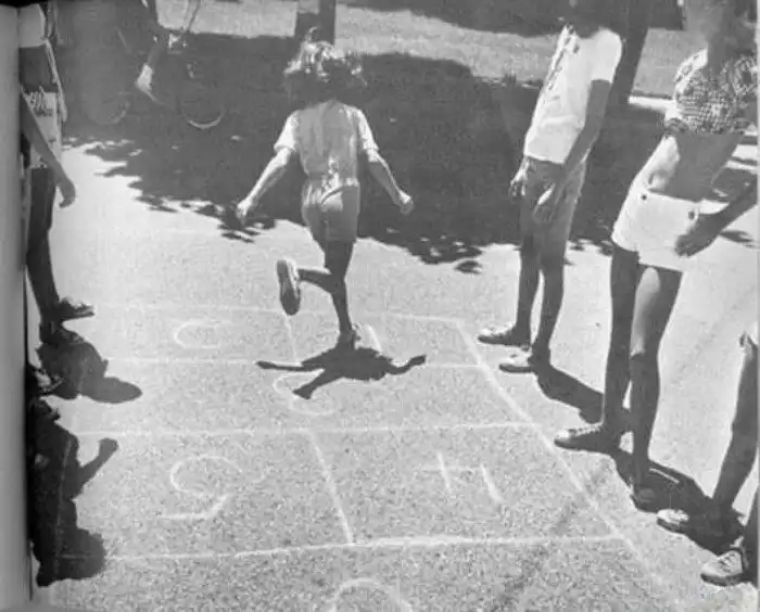 Летом возле каждого дома на асфальте мелом расчерченные клетки — классики. Так называлась игра, в которую играли девчонки.