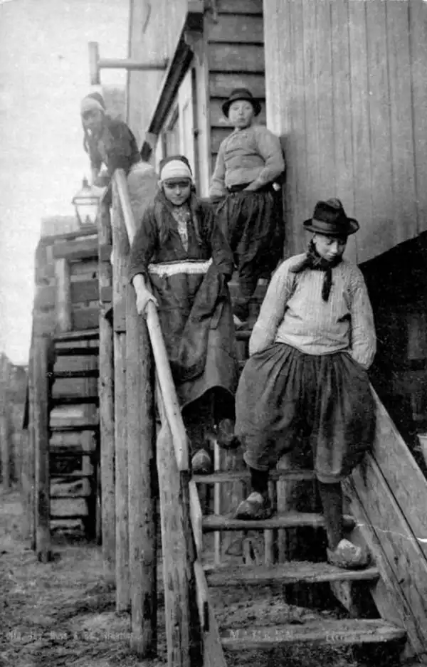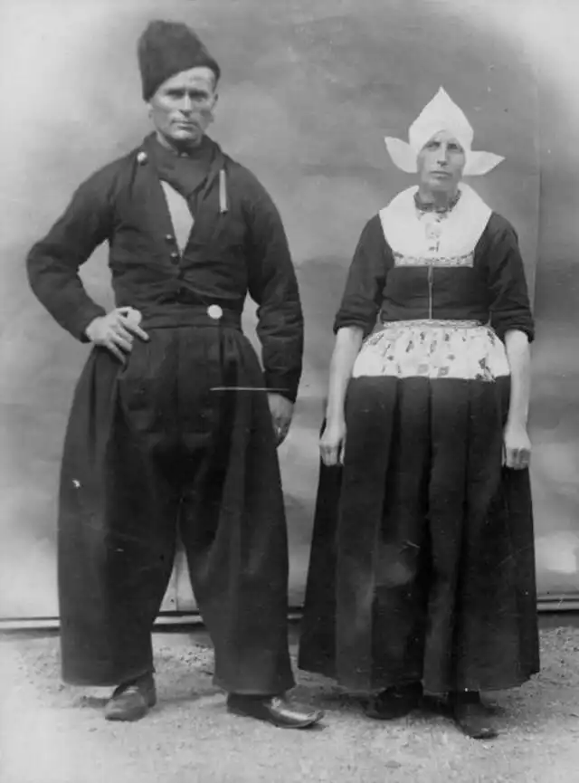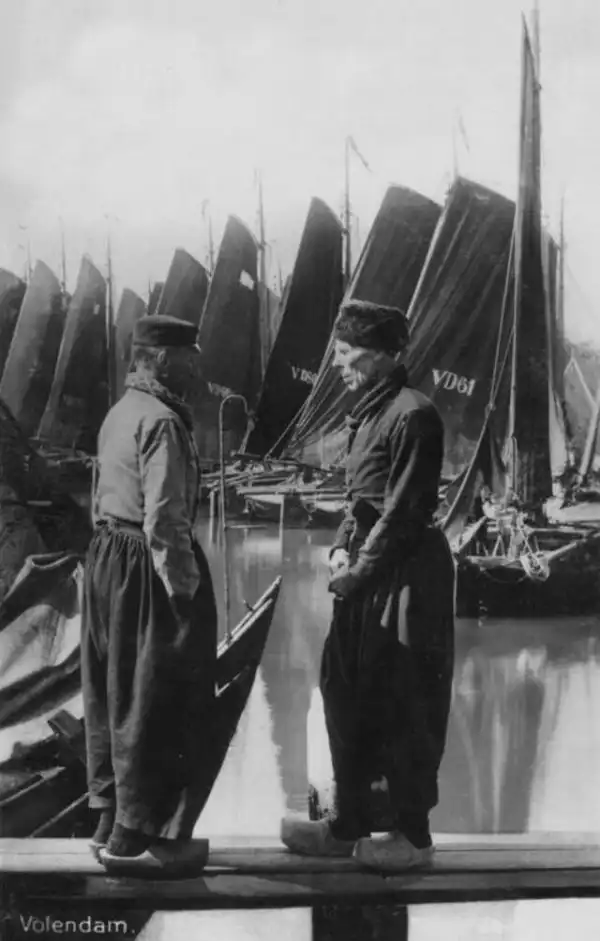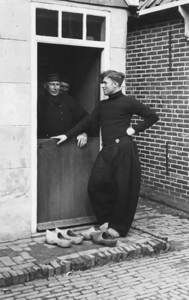 Современные модники обзавидовались бы, глядя на рабочие штаны голландских грузчиков, разнорабочих и рыбаков! Эти штаны назывались "волендамскими", поскольку, как утверждалось, впервые появились в городке под названием Волендам. Так или иначе, фасон отпадный!