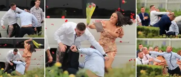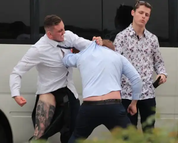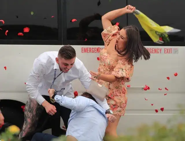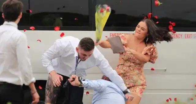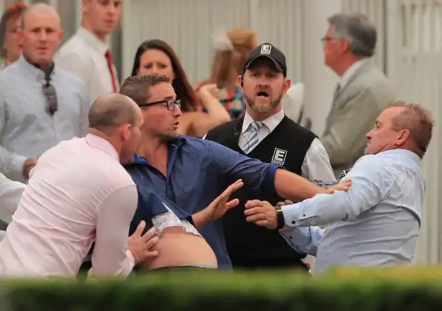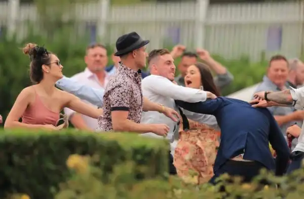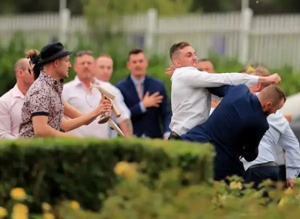 После скачек Роузхилл в Сиднее на ипподроме вспыхнула массовая драка. Непонятно, что не поделили посетители, но слов оказалось мало и они ринулись в бой. Какому-то парню порвали штаны, оголив татуированную ногу, а по голове девушка лупила его букетом цветов.