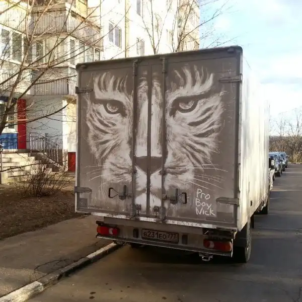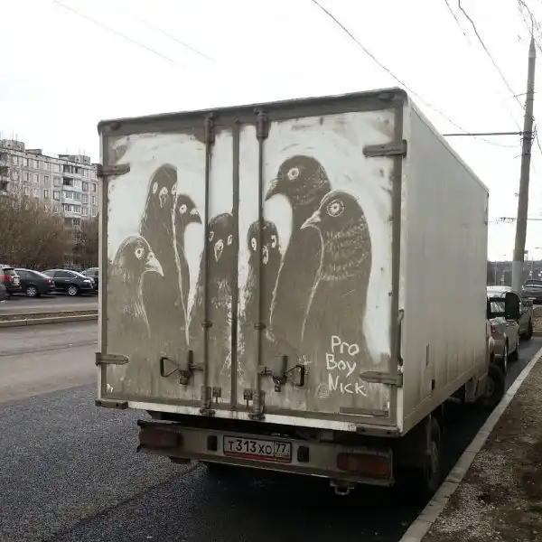 Никита Голубев - необычный художник. Вместо холста он выбрал грязные машины. Как правило, вид покрытых грязью автомобилей не радует взор, но благодаря Никите, неухоженные транспортные средства превращаются в произведения искусства. После его работ не хочется ехать на автомойку, чтобы не смывать эту красоту. Давайте посмотрим на работы Голубева.