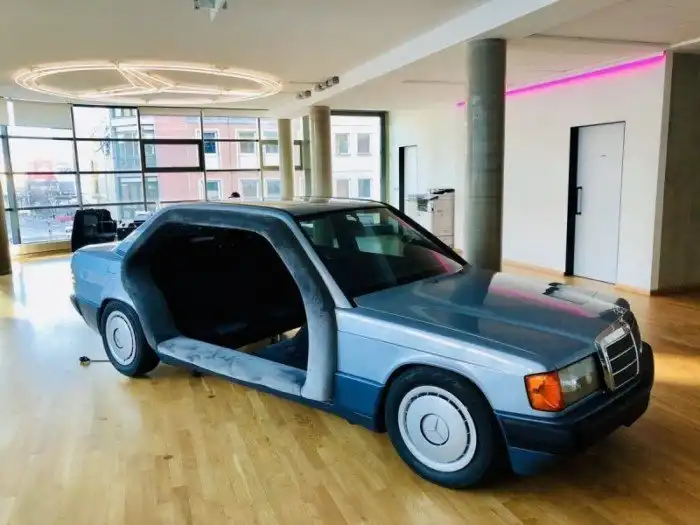 В европейском офисе рекламного агентства Antoni, работающего с компанией Mercedes-Benz, появилось место для переговоров, созданное из… Mercedes-Benz 190, одного из самых популярных «Меседесов» 1980-х годов.