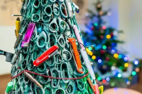 Необычная елка, если ее можно так назвать, появилась в аэропорту Вильнюса. Местные сотрудники решили собрать конструкцию, которая целиком состоит из запрещенных предметов, которые пассажиры пытались пронести на борт самолета. Стоит отметить, что «елка» получилась довольно острой и опасной. Удивляет, что все знают — нельзя это проносить в самолет, однако все равно пытаются. Как говорит управляющий воздушной гаванью, это не просто украшение, а напоминание пассажирам о том, какие вещи нельзя брать с собой на борт.