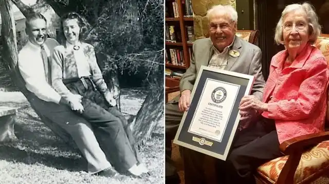 Кто сказал, что "любовь живет три года?". Эта милая парочка из США показала своим примером, что такое "крепкий брак". Итак, 106-летний Джон Хендерсон и 105-летняя Шарлотта из Техаса отпраздновали 80-летие своего брака. Они вошли в Книгу рекордов Гиннесса, как старейшая супружеская пара в мире. Они познакомились в 1934 году, когда они учились в Университете Техаса. Через пять лет после знакомства они вступили в брак и более не разлучались.