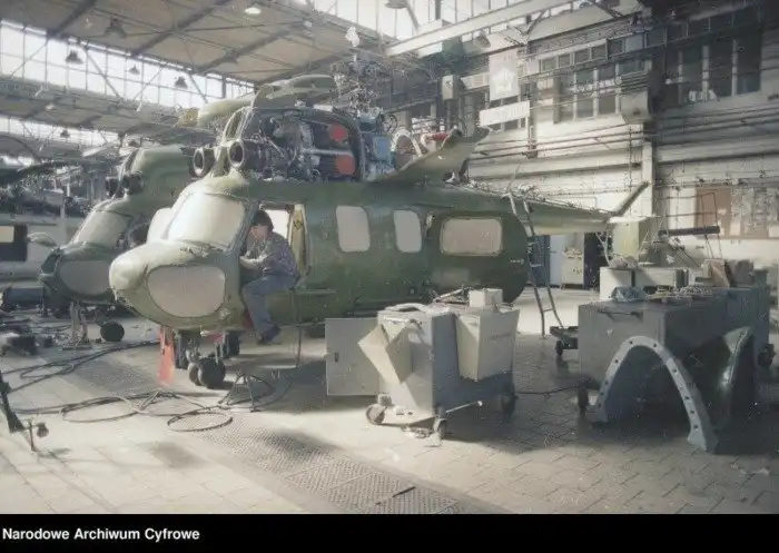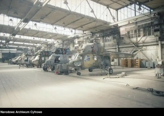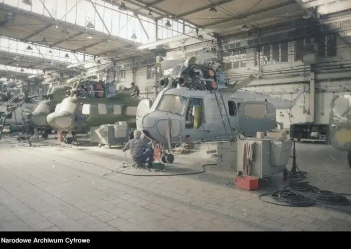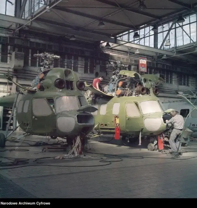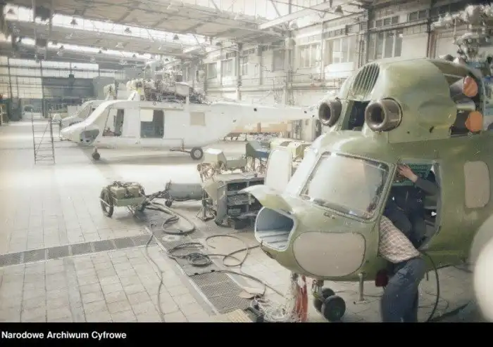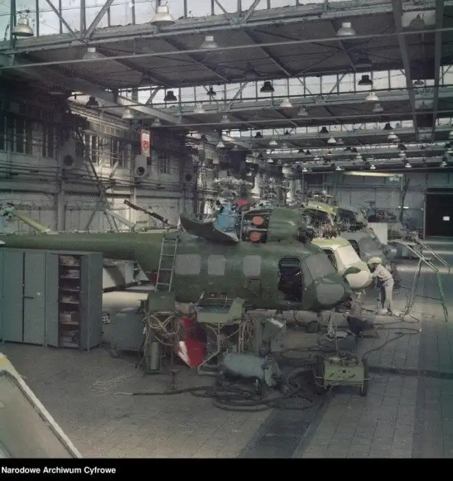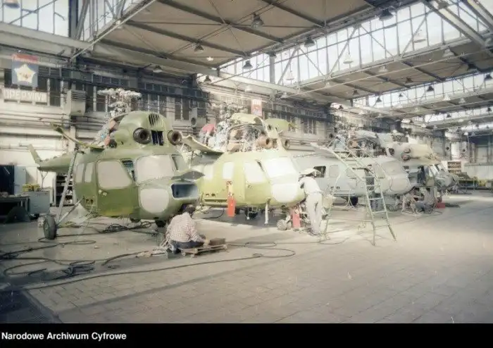 Сборка многоцелевых вертолётов Ми-2 на польском авиационном заводе Wytwórnia Sprzętu Komunikacyjnego „PZL-Świdnik” SA в городе Свидник; ~ 1987-1990-й гг.