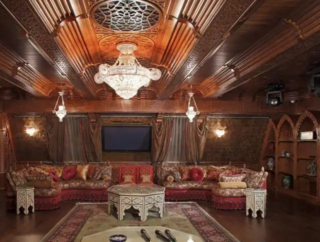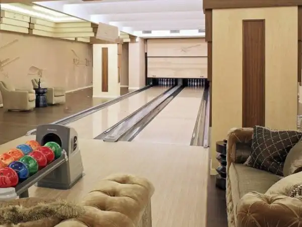 Кроме того, во дворце есть винный погреб, кинозал, боулинг, караоке, гольфе-тренажер, а отдельное крыло предназначена для спа-салона, кальянной и большого бассейна.