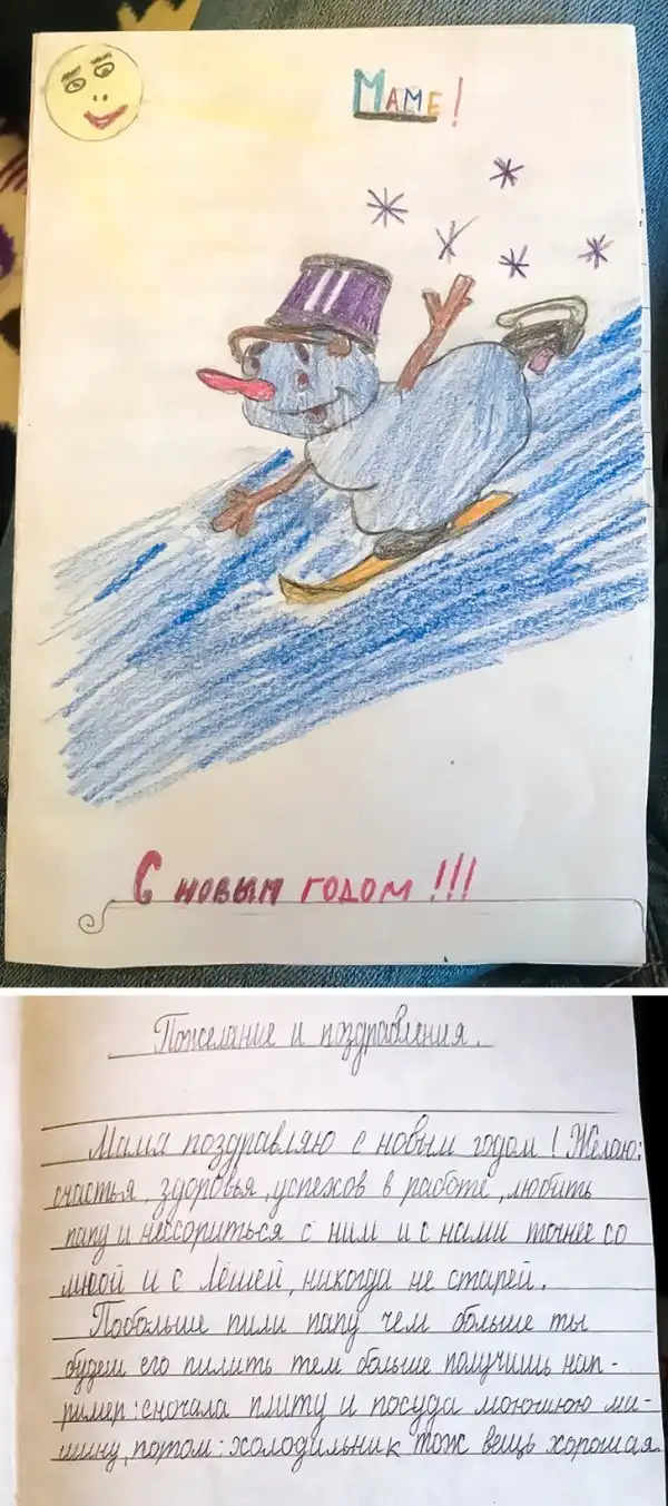 "Рисовал маме открытку в 3-м классе, 97 год"