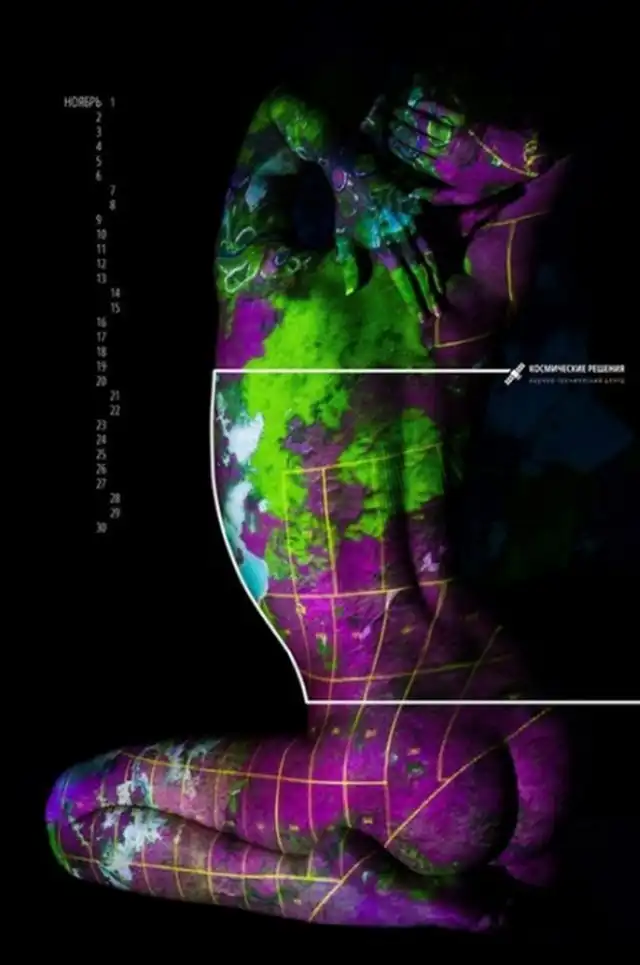 НТЦ «Космические решения», занимающийся космическим мониторингом лесных пожаров, представил серию очень горячих снимков, на которых представлены обнаженные девушки, на тела которых проецировали фотографии со спутника. Получилось очень красиво.